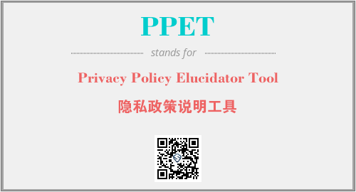 上述内容是“Privacy Policy Elucidator Tool”作为“PPET”的缩写,解释为“隐私政策说明工具”时的信息,以及英文缩略词PPET所代表的英文单词,其对应的中文拼音、详细解释以及在英文中的流行度和相关分类、应用领域及应用示例等。