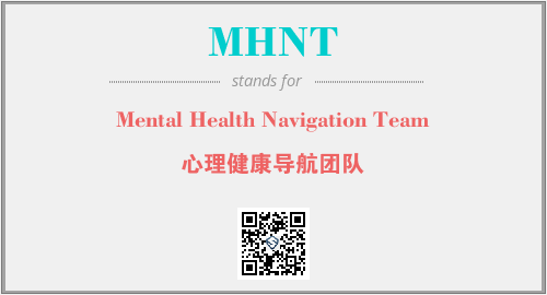 上述内容是“Mental Health Navigation Team”作为“MHNT”的缩写,解释为“心理健康导航团队”时的信息,以及英文缩略词MHNT所代表的英文单词,其对应的中文拼音、详细解释以及在英文中的流行度和相关分类、应用领域及应用示例等。