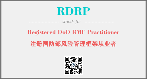 上述内容是“Registered DoD RMF Practitioner”作为“RDRP”的缩写,解释为“注册国防部风险管理框架从业者”时的信息,以及英文缩略词RDRP所代表的英文单词,其对应的中文拼音、详细解释以及在英文中的流行度和相关分类、应用领域及应用示例等。