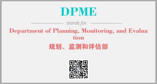 上述内容是“Department of Planning, Monitoring, and Evaluation”作为“DPME”的缩写,解释为“规划、监测和评估部”时的信息,以及英文缩略词DPME所代表的英文单词,其对应的中文拼音、详细解释以及在英文中的流行度和相关分类、应用领域及应用示例等。