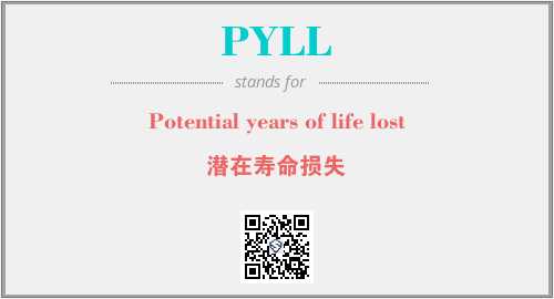 英文缩略词“PYLL”经常作为“Potential years of life lost”的英文缩写来使用,中文表示:“潜在寿命损失”。本文将详细介绍英文缩写词PYLL所代表英文单词,其对应的中文拼音、详细解释以及在英语中的流行度。此外,还有关于缩略词PYLL的分类、应用领域及相关应用示例等。