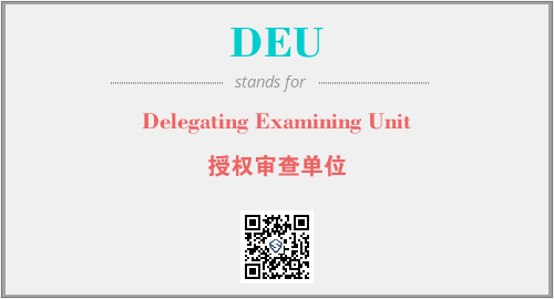 以上为Delegating Examining Unit英文缩略词DEU的中文解释,以及该英文缩写在英语的流行度、分类和应用领域方面的信息。