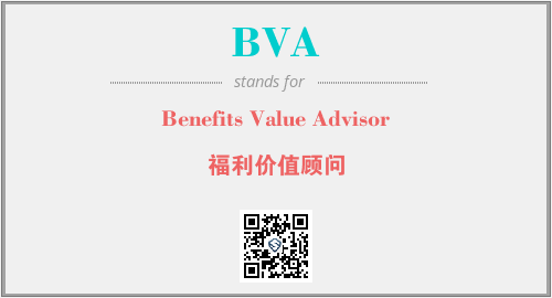 上述内容是“Benefits Value Advisor”作为“BVA”的缩写,解释为“福利价值顾问”时的信息,以及英文缩略词BVA所代表的英文单词,其对应的中文拼音、详细解释以及在英文中的流行度和相关分类、应用领域及应用示例等。