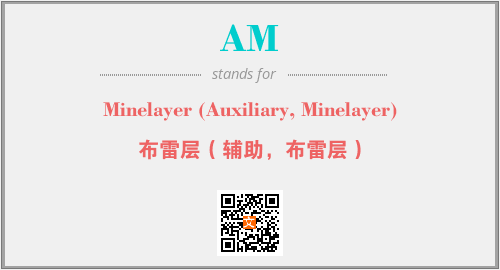 英文缩略词“AM”经常作为“Minelayer (Auxiliary, Minelayer)”的英文缩写来使用,中文表示:“布雷层(辅助,布雷层)”。本文将详细介绍英文缩写词AM所代表英文单词,其对应的中文拼音、详细解释以及在英语中的流行度。此外,还有关于缩略词AM的分类、应用领域及相关应用示例等。