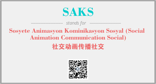 以上为Sosyete Animasyon Kominikasyon Sosyal (Social Animation Communication Social)英文缩略词SAKS的中文解释,以及该英文缩写在英语的流行度、分类和应用领域方面的信息。