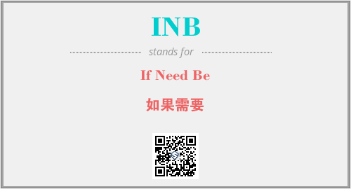 英文缩略词“INB”经常作为“If Need Be”的英文缩写来使用,中文表示:“如果需要”。本文将详细介绍英文缩写词INB所代表英文单词,其对应的中文拼音、详细解释以及在英语中的流行度。此外,还有关于缩略词INB的分类、应用领域及相关应用示例等。