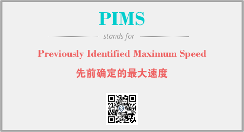 上述内容是“Previously Identified Maximum Speed”作为“PIMS”的缩写,解释为“先前确定的最大速度”时的信息,以及英文缩略词PIMS所代表的英文单词,其对应的中文拼音、详细解释以及在英文中的流行度和相关分类、应用领域及应用示例等。