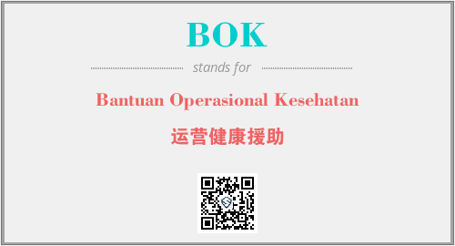 上述内容是“Bantuan Operasional Kesehatan”作为“BOK”的缩写,解释为“运营健康援助”时的信息,以及英文缩略词BOK所代表的英文单词,其对应的中文拼音、详细解释以及在英文中的流行度和相关分类、应用领域及应用示例等。