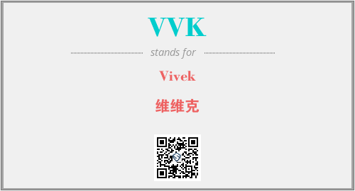 上述内容是“Vivek”作为“VVK”的缩写,解释为“维维克”时的信息,以及英文缩略词VVK所代表的英文单词,其对应的中文拼音、详细解释以及在英文中的流行度和相关分类、应用领域及应用示例等。