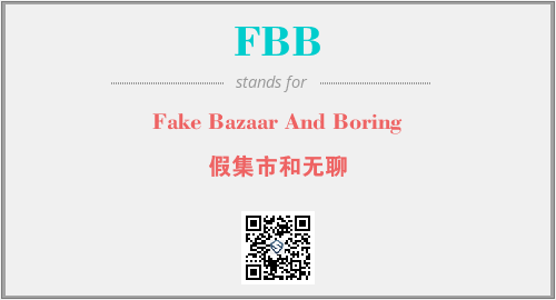 英文缩略词“FBB”经常作为“Fake Bazaar And Boring”的英文缩写来使用,中文表示:“假集市和无聊”。本文将详细介绍英文缩写词FBB所代表英文单词,其对应的中文拼音、详细解释以及在英语中的流行度。此外,还有关于缩略词FBB的分类、应用领域及相关应用示例等。
