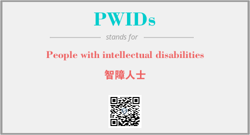 英文缩略词“PWIDs”经常作为“People with intellectual disabilities”的英文缩写来使用,中文表示:“智障人士”。本文将详细介绍英文缩写词PWIDs所代表英文单词,其对应的中文拼音、详细解释以及在英语中的流行度。此外,还有关于缩略词PWIDs的分类、应用领域及相关应用示例等。