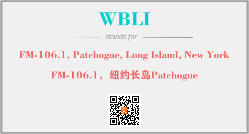 上述内容是“FM-106.1, Patchogue, Long Island, New York”作为“WBLI”的缩写,解释为“FM-106.1,纽约长岛Patchogue”时的信息,以及英文缩略词WBLI所代表的英文单词,其对应的中文拼音、详细解释以及在英文中的流行度和相关分类、应用领域及应用示例等。