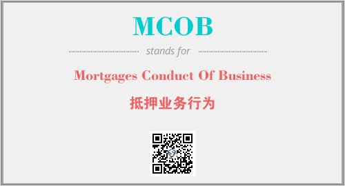 上述内容是“Mortgages Conduct Of Business”作为“MCOB”的缩写,解释为“抵押业务行为”时的信息,以及英文缩略词MCOB所代表的英文单词,其对应的中文拼音、详细解释以及在英文中的流行度和相关分类、应用领域及应用示例等。