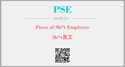上述内容是“Piece of Sh*t Employee”作为“PSE”的缩写,解释为“Sh*t员工”时的信息,以及英文缩略词PSE所代表的英文单词,其对应的中文拼音、详细解释以及在英文中的流行度和相关分类、应用领域及应用示例等。
