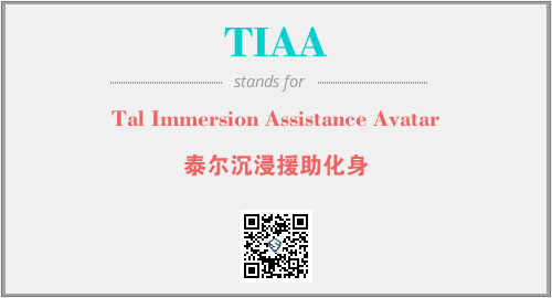 上述内容是“Tal Immersion Assistance Avatar”作为“TIAA”的缩写,解释为“泰尔沉浸援助化身”时的信息,以及英文缩略词TIAA所代表的英文单词,其对应的中文拼音、详细解释以及在英文中的流行度和相关分类、应用领域及应用示例等。