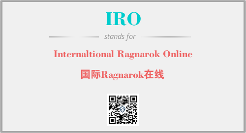 英文缩略词“IRO”经常作为“Internaltional Ragnarok Online”的英文缩写来使用,中文表示:“国际Ragnarok在线”。本文将详细介绍英文缩写词IRO所代表英文单词,其对应的中文拼音、详细解释以及在英语中的流行度。此外,还有关于缩略词IRO的分类、应用领域及相关应用示例等。