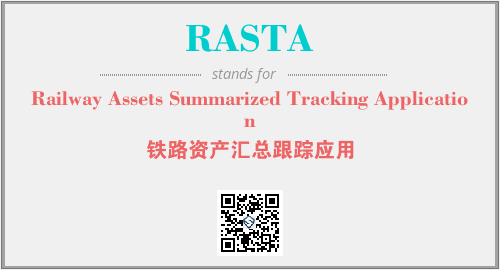 上述内容是“Railway Assets Summarized Tracking Application”作为“RASTA”的缩写,解释为“铁路资产汇总跟踪应用”时的信息,以及英文缩略词RASTA所代表的英文单词,其对应的中文拼音、详细解释以及在英文中的流行度和相关分类、应用领域及应用示例等。