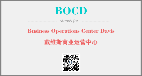 上述内容是“Business Operations Center Davis”作为“BOCD”的缩写,解释为“戴维斯商业运营中心”时的信息,以及英文缩略词BOCD所代表的英文单词,其对应的中文拼音、详细解释以及在英文中的流行度和相关分类、应用领域及应用示例等。