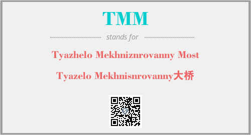 英文缩略词“TMM”经常作为“Tyazhelo Mekhniznrovanny Most”的英文缩写来使用,中文表示:“Tyazelo Mekhnisnrovanny大桥”。本文将详细介绍英文缩写词TMM所代表英文单词,其对应的中文拼音、详细解释以及在英语中的流行度。此外,还有关于缩略词TMM的分类、应用领域及相关应用示例等。