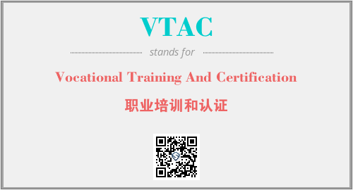 英文缩略词“VTAC”经常作为“Vocational Training And Certification”的英文缩写来使用,中文表示:“职业培训和认证”。本文将详细介绍英文缩写词VTAC所代表英文单词,其对应的中文拼音、详细解释以及在英语中的流行度。此外,还有关于缩略词VTAC的分类、应用领域及相关应用示例等。
