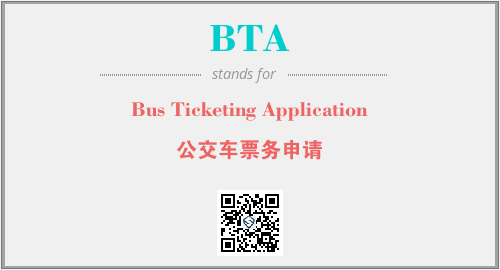英文缩略词“BTA”经常作为“Bus Ticketing Application”的英文缩写来使用,中文表示:“公交车票务申请”。本文将详细介绍英文缩写词BTA所代表英文单词,其对应的中文拼音、详细解释以及在英语中的流行度。此外,还有关于缩略词BTA的分类、应用领域及相关应用示例等。