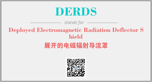 上述内容是“Deployed Electromagnetic Radiation Deflector Shield”作为“DERDS”的缩写,解释为“展开的电磁辐射导流罩”时的信息,以及英文缩略词DERDS所代表的英文单词,其对应的中文拼音、详细解释以及在英文中的流行度和相关分类、应用领域及应用示例等。