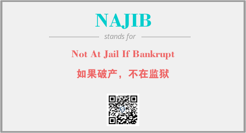 上述内容是“Not At Jail If Bankrupt”作为“NAJIB”的缩写,解释为“如果破产,不在监狱”时的信息,以及英文缩略词NAJIB所代表的英文单词,其对应的中文拼音、详细解释以及在英文中的流行度和相关分类、应用领域及应用示例等。