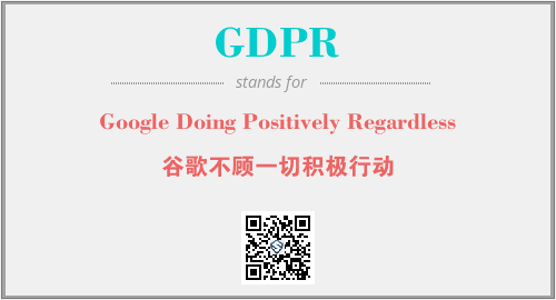 英文缩略词“GDPR”经常作为“Google Doing Positively Regardless”的英文缩写来使用,中文表示:“谷歌不顾一切积极行动”。本文将详细介绍英文缩写词GDPR所代表英文单词,其对应的中文拼音、详细解释以及在英语中的流行度。此外,还有关于缩略词GDPR的分类、应用领域及相关应用示例等。