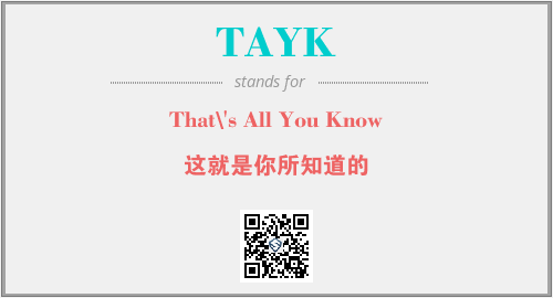 以上为That\'s All You Know英文缩略词TAYK的中文解释,以及该英文缩写在英语的流行度、分类和应用领域方面的信息。