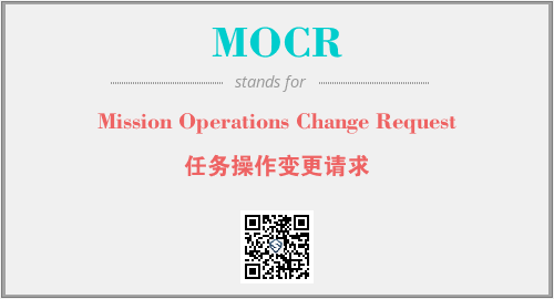 上述内容是“Mission Operations Change Request”作为“MOCR”的缩写,解释为“任务操作变更请求”时的信息,以及英文缩略词MOCR所代表的英文单词,其对应的中文拼音、详细解释以及在英文中的流行度和相关分类、应用领域及应用示例等。