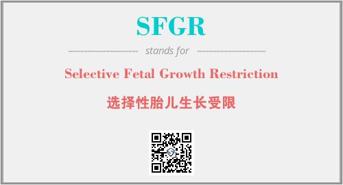 上述内容是“Selective Fetal Growth Restriction”作为“SFGR”的缩写,解释为“选择性胎儿生长受限”时的信息,以及英文缩略词SFGR所代表的英文单词,其对应的中文拼音、详细解释以及在英文中的流行度和相关分类、应用领域及应用示例等。