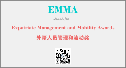 上述内容是“Expatriate Management and Mobility Awards”作为“EMMA”的缩写,解释为“外籍人员管理和流动奖”时的信息,以及英文缩略词EMMA所代表的英文单词,其对应的中文拼音、详细解释以及在英文中的流行度和相关分类、应用领域及应用示例等。