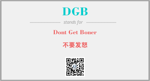 英文缩略词“DGB”经常作为“Dont Get Boner”的英文缩写来使用,中文表示:“不要发怒”。本文将详细介绍英文缩写词DGB所代表英文单词,其对应的中文拼音、详细解释以及在英语中的流行度。此外,还有关于缩略词DGB的分类、应用领域及相关应用示例等。