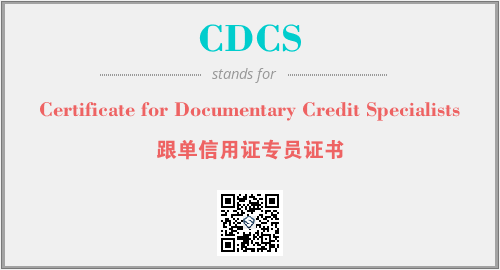 以上为Certificate for Documentary Credit Specialists英文缩略词CDCS的中文解释,以及该英文缩写在英语的流行度、分类和应用领域方面的信息。