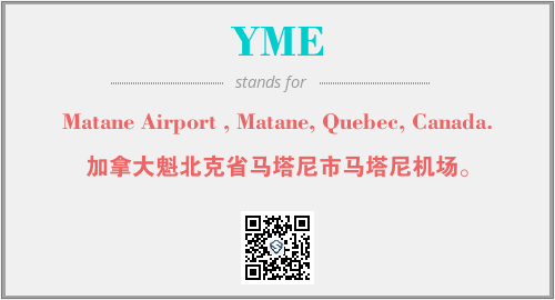 上述内容是“Matane Airport , Matane, Quebec, Canada.”作为“YME”的缩写,解释为“加拿大魁北克省马塔尼市马塔尼机场。”时的信息,以及英文缩略词YME所代表的英文单词,其对应的中文拼音、详细解释以及在英文中的流行度和相关分类、应用领域及应用示例等。
