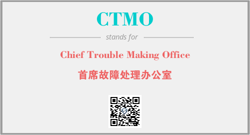 以上为Chief Trouble Making Office英文缩略词CTMO的中文解释,以及该英文缩写在英语的流行度、分类和应用领域方面的信息。