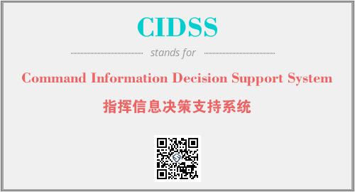 上述内容是“Command Information Decision Support System”作为“CIDSS”的缩写,解释为“指挥信息决策支持系统”时的信息,以及英文缩略词CIDSS所代表的英文单词,其对应的中文拼音、详细解释以及在英文中的流行度和相关分类、应用领域及应用示例等。