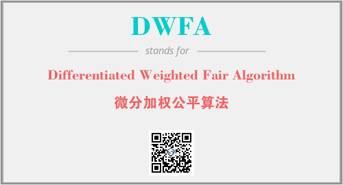 上述内容是“Differentiated Weighted Fair Algorithm”作为“DWFA”的缩写,解释为“微分加权公平算法”时的信息,以及英文缩略词DWFA所代表的英文单词,其对应的中文拼音、详细解释以及在英文中的流行度和相关分类、应用领域及应用示例等。