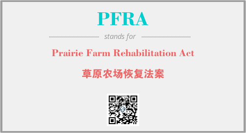 上述内容是“Prairie Farm Rehabilitation Act”作为“PFRA”的缩写,解释为“草原农场恢复法案”时的信息,以及英文缩略词PFRA所代表的英文单词,其对应的中文拼音、详细解释以及在英文中的流行度和相关分类、应用领域及应用示例等。