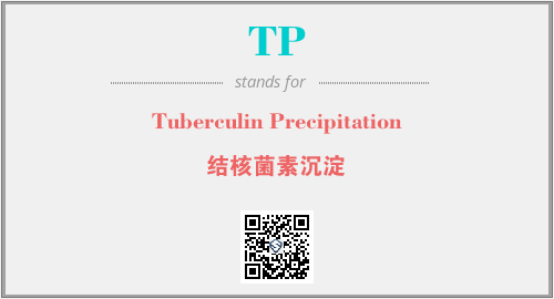上述内容是“Tuberculin Precipitation”作为“TP”的缩写,解释为“结核菌素沉淀”时的信息,以及英文缩略词TP所代表的英文单词,其对应的中文拼音、详细解释以及在英文中的流行度和相关分类、应用领域及应用示例等。