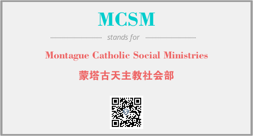 上述内容是“Montague Catholic Social Ministries”作为“MCSM”的缩写,解释为“蒙塔古天主教社会部”时的信息,以及英文缩略词MCSM所代表的英文单词,其对应的中文拼音、详细解释以及在英文中的流行度和相关分类、应用领域及应用示例等。