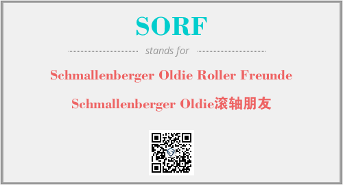 上述内容是“Schmallenberger Oldie Roller Freunde”作为“SORF”的缩写,解释为“Schmallenberger Oldie滚轴朋友”时的信息,以及英文缩略词SORF所代表的英文单词,其对应的中文拼音、详细解释以及在英文中的流行度和相关分类、应用领域及应用示例等。