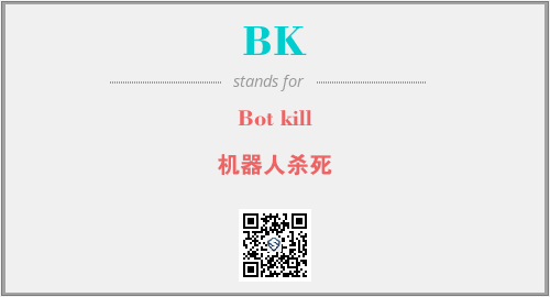 上述内容是“Bot kill”作为“BK”的缩写,解释为“机器人杀死”时的信息,以及英文缩略词BK所代表的英文单词,其对应的中文拼音、详细解释以及在英文中的流行度和相关分类、应用领域及应用示例等。