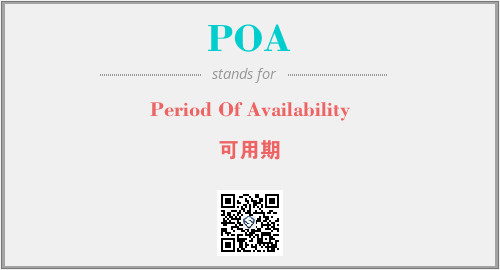 以上为Period Of Availability英文缩略词POA的中文解释,以及该英文缩写在英语的流行度、分类和应用领域方面的信息。