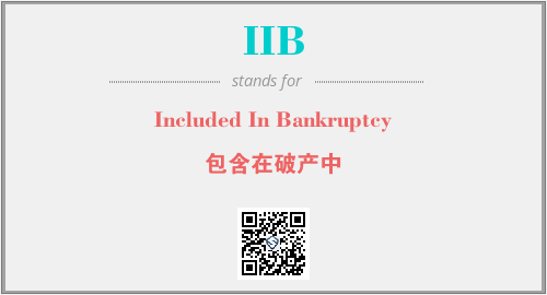 上述内容是“Included In Bankruptcy”作为“IIB”的缩写,解释为“包含在破产中”时的信息,以及英文缩略词IIB所代表的英文单词,其对应的中文拼音、详细解释以及在英文中的流行度和相关分类、应用领域及应用示例等。