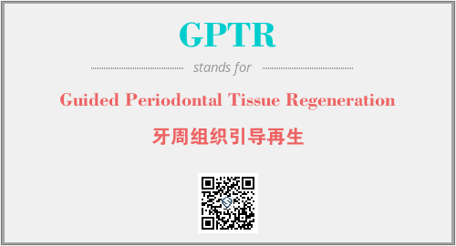 英文缩略词“GPTR”经常作为“Guided Periodontal Tissue Regeneration”的英文缩写来使用,中文表示:“牙周组织引导再生”。本文将详细介绍英文缩写词GPTR所代表英文单词,其对应的中文拼音、详细解释以及在英语中的流行度。此外,还有关于缩略词GPTR的分类、应用领域及相关应用示例等。