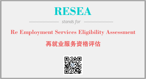 上述内容是“Re Employment Services Eligibility Assessment”作为“RESEA”的缩写,解释为“再就业服务资格评估”时的信息,以及英文缩略词RESEA所代表的英文单词,其对应的中文拼音、详细解释以及在英文中的流行度和相关分类、应用领域及应用示例等。