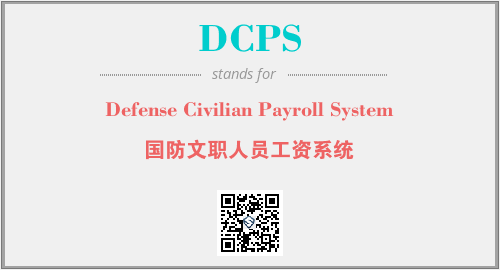 英文缩略词“DCPS”经常作为“Defense Civilian Payroll System”的英文缩写来使用,中文表示:“国防文职人员工资系统”。本文将详细介绍英文缩写词DCPS所代表英文单词,其对应的中文拼音、详细解释以及在英语中的流行度。此外,还有关于缩略词DCPS的分类、应用领域及相关应用示例等。