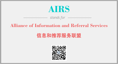 上述内容是“Alliance of Information and Referral Services”作为“AIRS”的缩写,解释为“信息和推荐服务联盟”时的信息,以及英文缩略词AIRS所代表的英文单词,其对应的中文拼音、详细解释以及在英文中的流行度和相关分类、应用领域及应用示例等。
