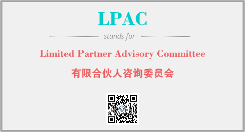 上述内容是“Limited Partner Advisory Committee”作为“LPAC”的缩写,解释为“有限合伙人咨询委员会”时的信息,以及英文缩略词LPAC所代表的英文单词,其对应的中文拼音、详细解释以及在英文中的流行度和相关分类、应用领域及应用示例等。